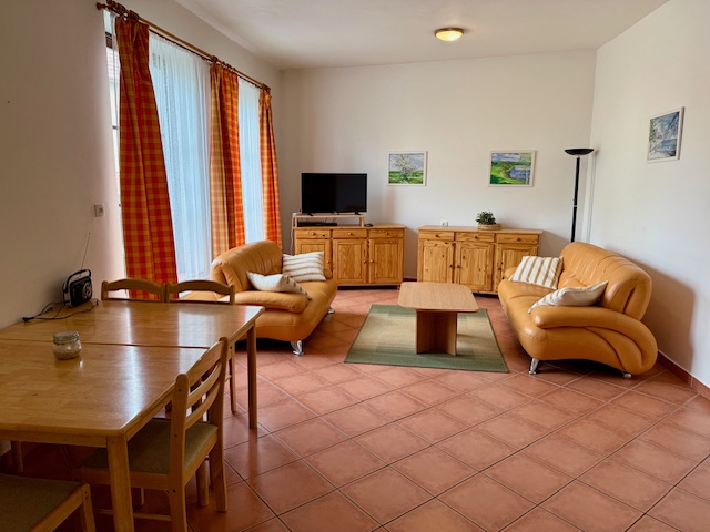 Apartmánový dům poskytuje ubytování pro 5 až 22 osob v 6 pokojích. Pokojová část má čtyři pokoje: 2 třílůžkové, 2 čtyřlůžkové. Apartmén se samostatným vstupem: Samostatná ložnice - manželské dvojlůžko. Podkrovní pokoj: 6 lůžek, obývací pokoj se sedací soupravou. | Obec Vlčatín se nachází v okrese Třebíč a 6 km jižně od města Velké Meziříčí. Obcí probíhá železniční trať z Velkého Meziříčí do Náměšti nad Oslavou, nad vesnicí na východ se tyčí Vlčatínský vrch, Telečkov, Hradisko. |